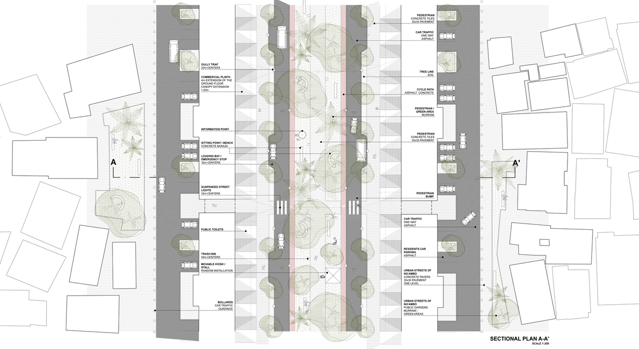 The Michenzani Green Corridors Plan encompasses the upgrading of the two major streets of the future city centre of Zanzibar and envisions traffic calming, upgrading of the pedestrian space and landscaping. The plan was created only after thorough contextual research and in close collaboration with and training of- the Department of Urban and Regional Planning (DoURP) of Zanzibar.
