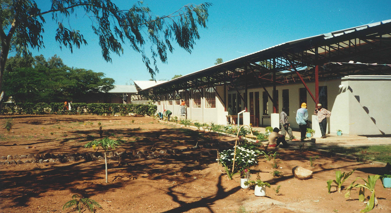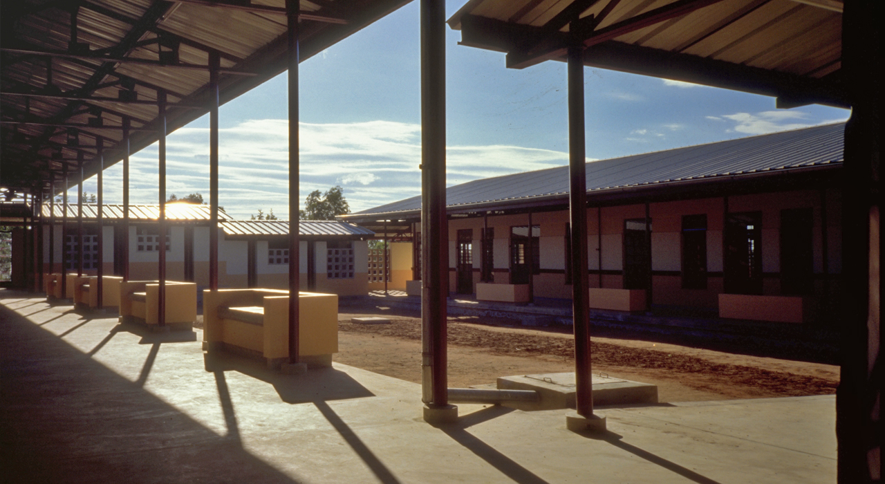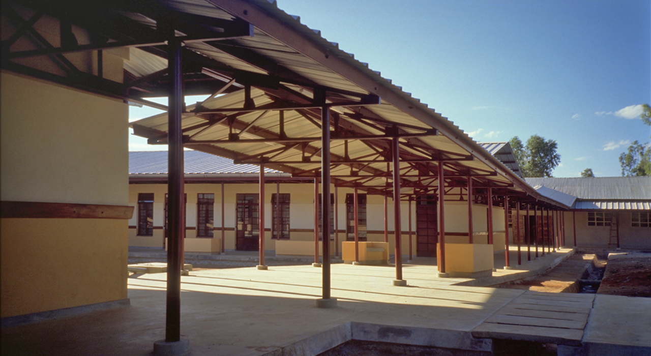 By the early 1990s, the existing health centre at Mtinko had become far too small to respond to the needs of the fast growing population. Therefore a masterplan was developed, that provided for a staged 20-years perspective growth into a 150-bed hospital. The existing buildings were rehabilitated and integrated into a fairly conventional pavilion-type hospital with covered connecting walkways. The out-patient services and clinics are redeveloped under a huge flying roof that covers buildings, reception area, waiting areas and circulation in one gesture.
